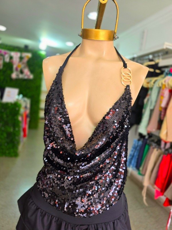 TOP BUCHE ACC TRIPLE ARGOLLA LENTEJUELAS NEGRO