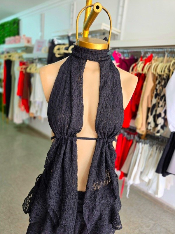 TOP CHOKER PICO ENCAJE NEGRO
